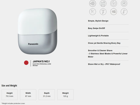 Panasonic ES-CM3A 3-Blade Palm-Sized Wet and Dry Rechargeable Shaver with USB C charging