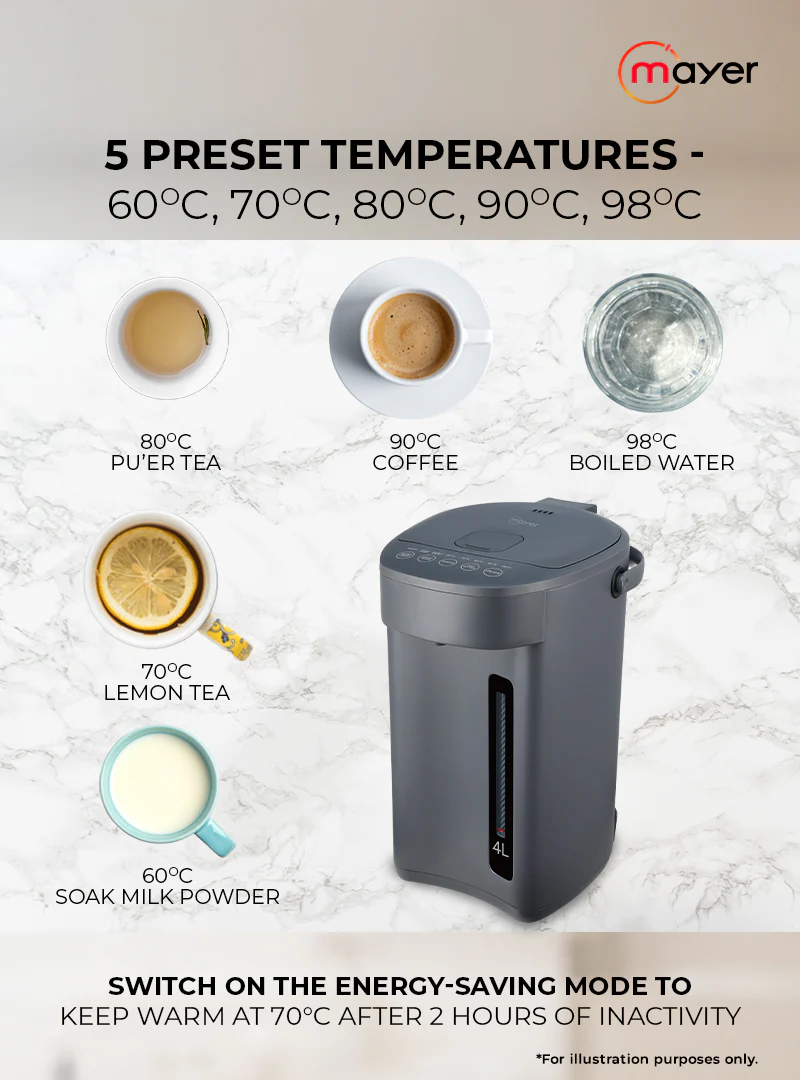 5 Adjustable Keep Warm Temperatures: 60°C, 70°C, 80°C, 90°C, 98°C