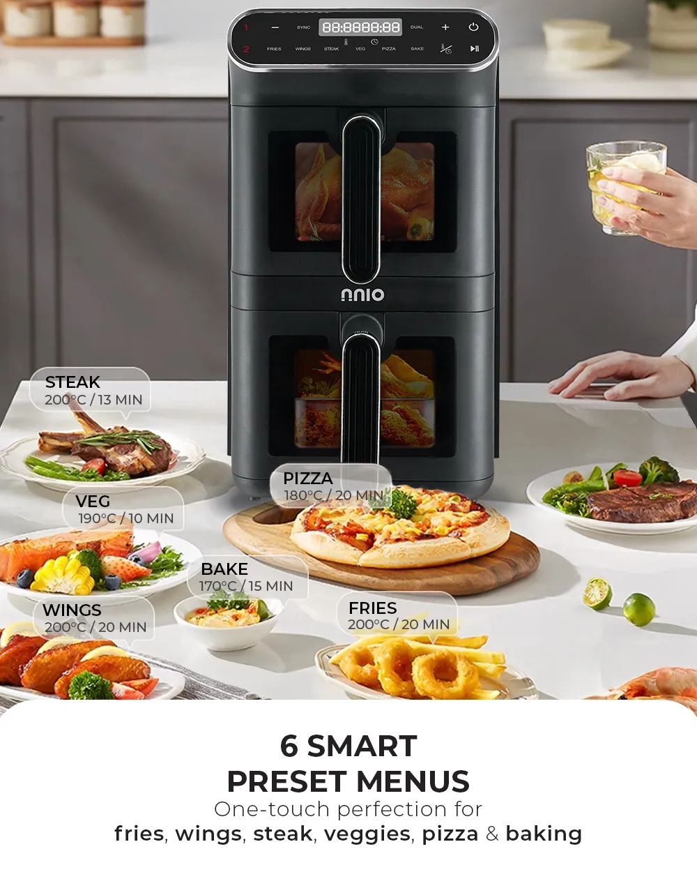 6 Preset Menus : Fries, Wings, Steak, Veg, Pizza, Bake