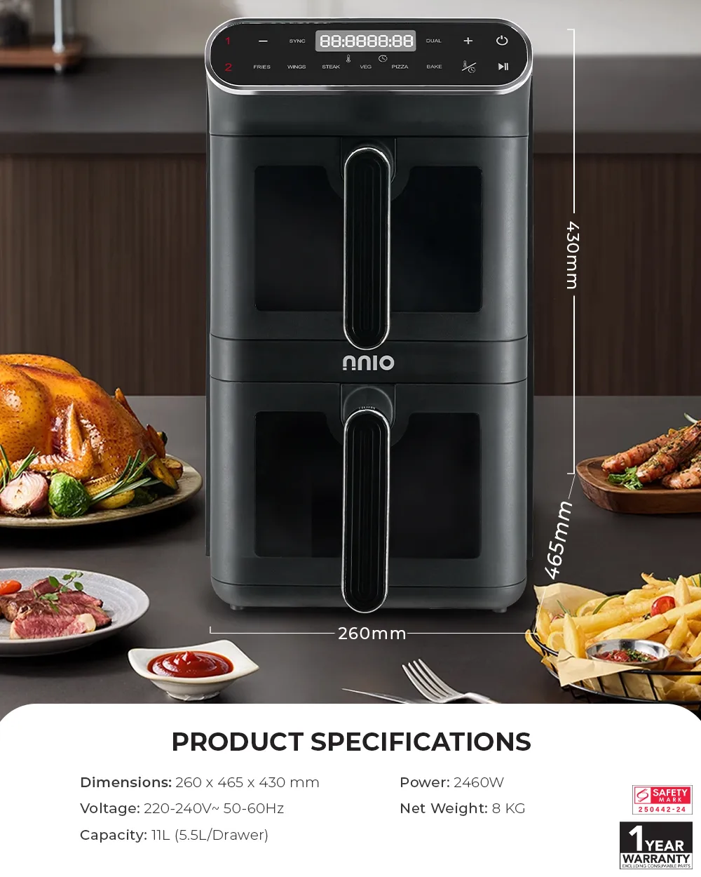 NNIO KRISPYDUO Dual Zone Digital Air Fryer 11L